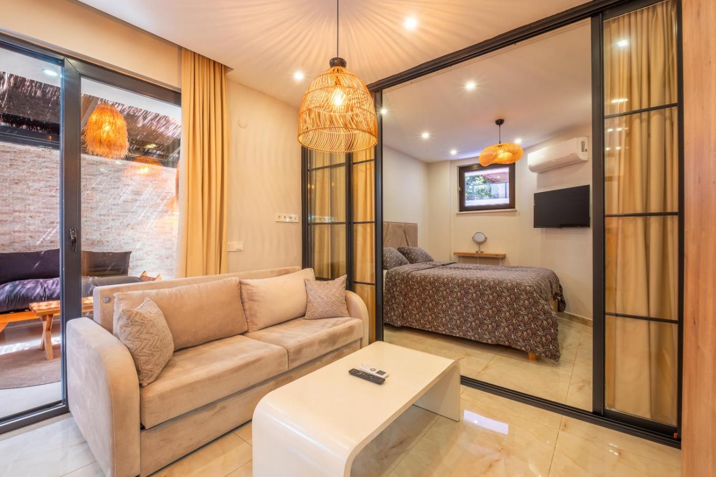 One-Bedroom Apartment. This air-conditioned apartment comes with 1 living room, 1 separate bedroom and 1 bathroom with a shower. Guests can make meals in the kitchen that features a stovetop, a refrigerator, a dishwasher and kitchenware. This apartment has a washing machine, an electric kettle, a flat-screen TV and a terrace. The unit has 2 beds.